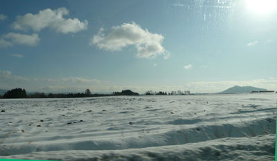 実家からの帰りに長万部あたりを私の運転で走行中、ふと海側を見ると、海と雲が