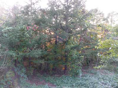 その前に、トロリと融けそうな夕陽が木々の間から見えていたのだが