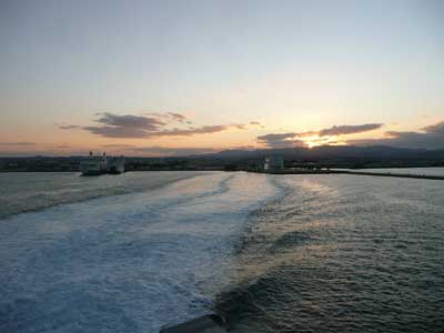 帰りのフェリーが出航すると、ちょうど日が沈みかけているところだ。