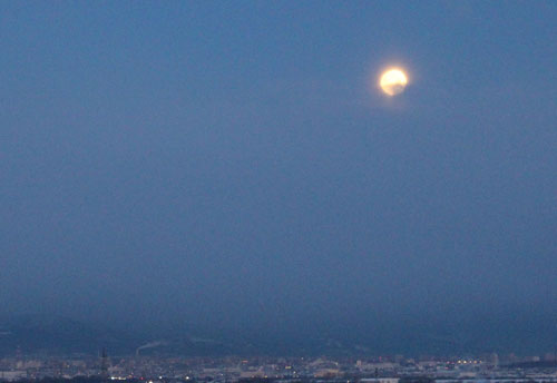冷え込んだ25日の朝、窓の外にきれいな月が残っていた。
