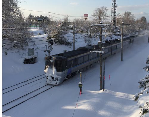 スマホを手に持っていたら、タイミングよく特急電車が通った。