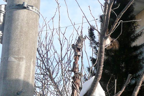 こっそり見ていると、電柱に登った。
