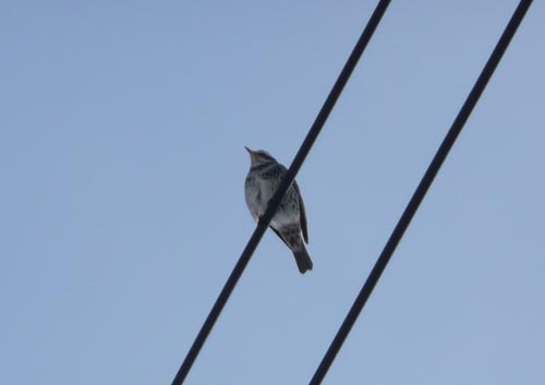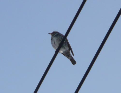 かろうじて、電線に止まっていたツグミさん(だと思う)。
