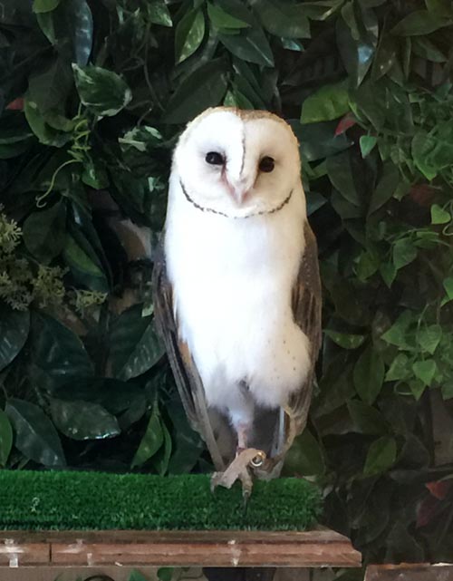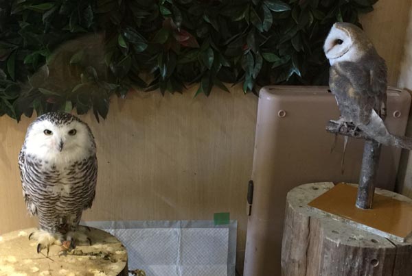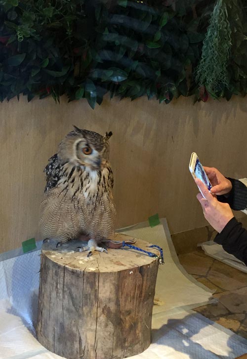 コーヒーなどを飲みながら、ガラス張りの中にいるフクロウさんを眺めることが