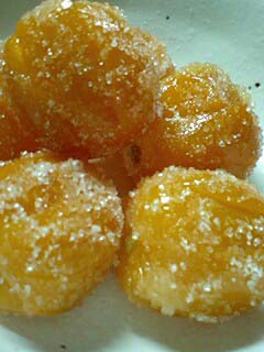 5.一晩おいたあと、ザルに並べて好みに乾燥させたあと、グラニュー糖をまぶす。