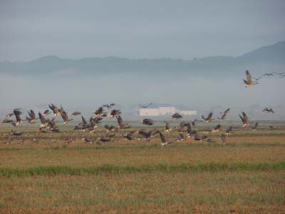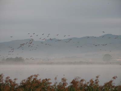 当然のことながら、バタバタとカモたちが飛び立つのが遠目に見えた。